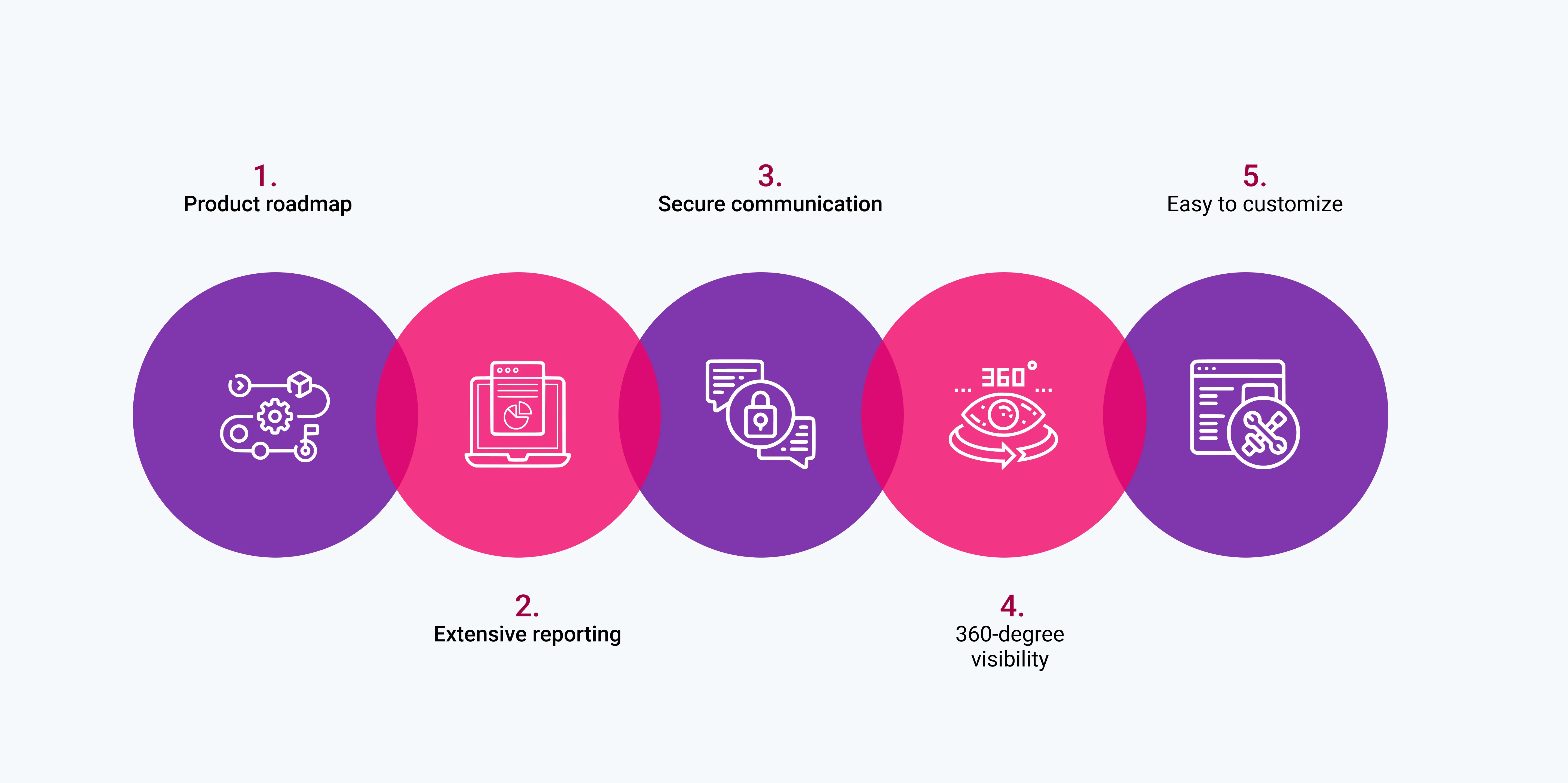 The product roadmap follows a customer-centric approach. It addresses specific pain points or challenges faced by clients.